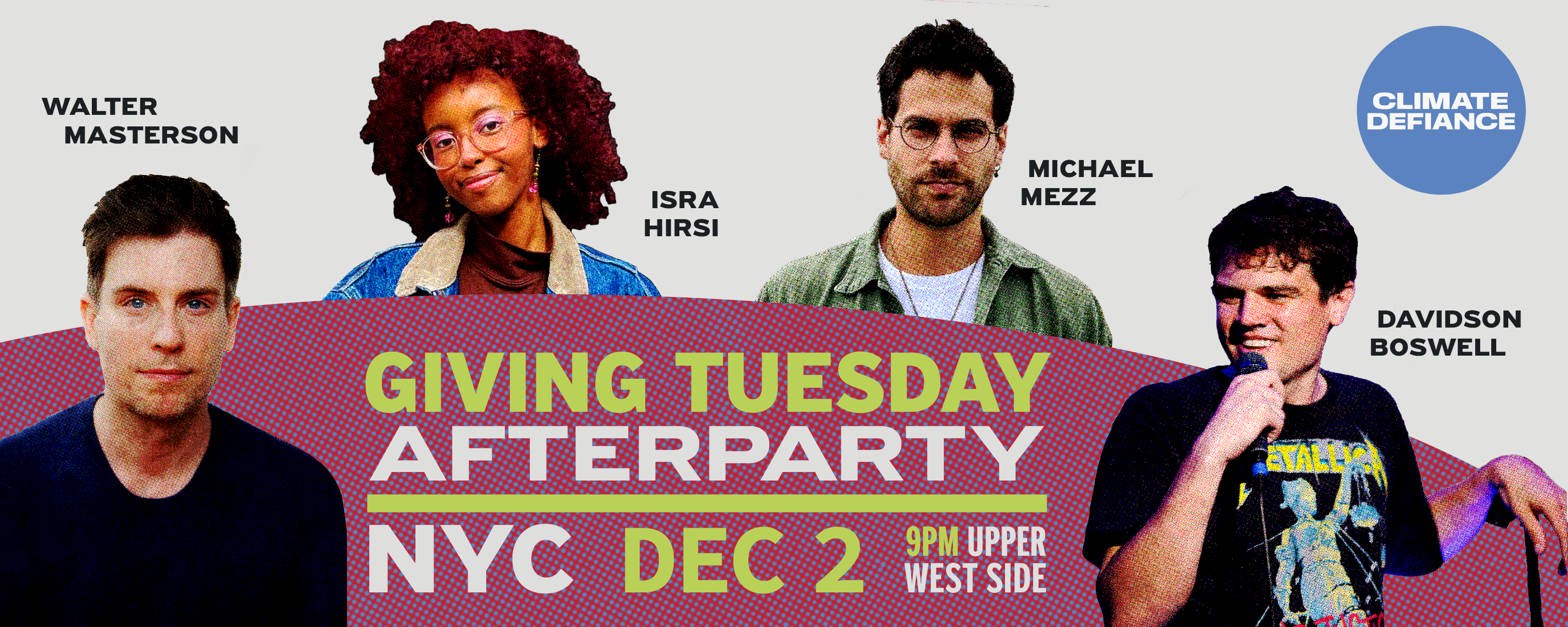Join our Giving Tuesday afterparty with Isra Hirsi, Michael Mezz, Walter Masterson!